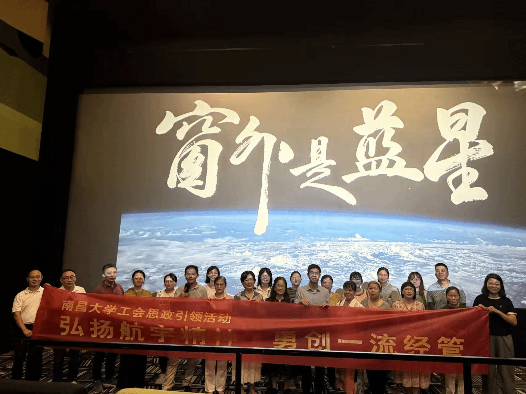 2025年10月16日下午,南昌大学经济管理学院工会组织全院教职工开展题为“弘扬航宇精神 勇创一流经管”的观影活动,全院28位教职工利用课余时间观看了航天主题电影《窗外是蓝星》。本次观影活动旨在通过影视作品直观展现中国航天事业的发展历程与辉煌成就,引导教职工从航天精神中汲取奋进力量。电影《窗外是蓝星》以细腻的叙事和震撼的画面,讲述了中国航天人在技术攻关、探索未知过程中攻坚克难、无私奉献的故事,生动诠释了特别能吃苦、...