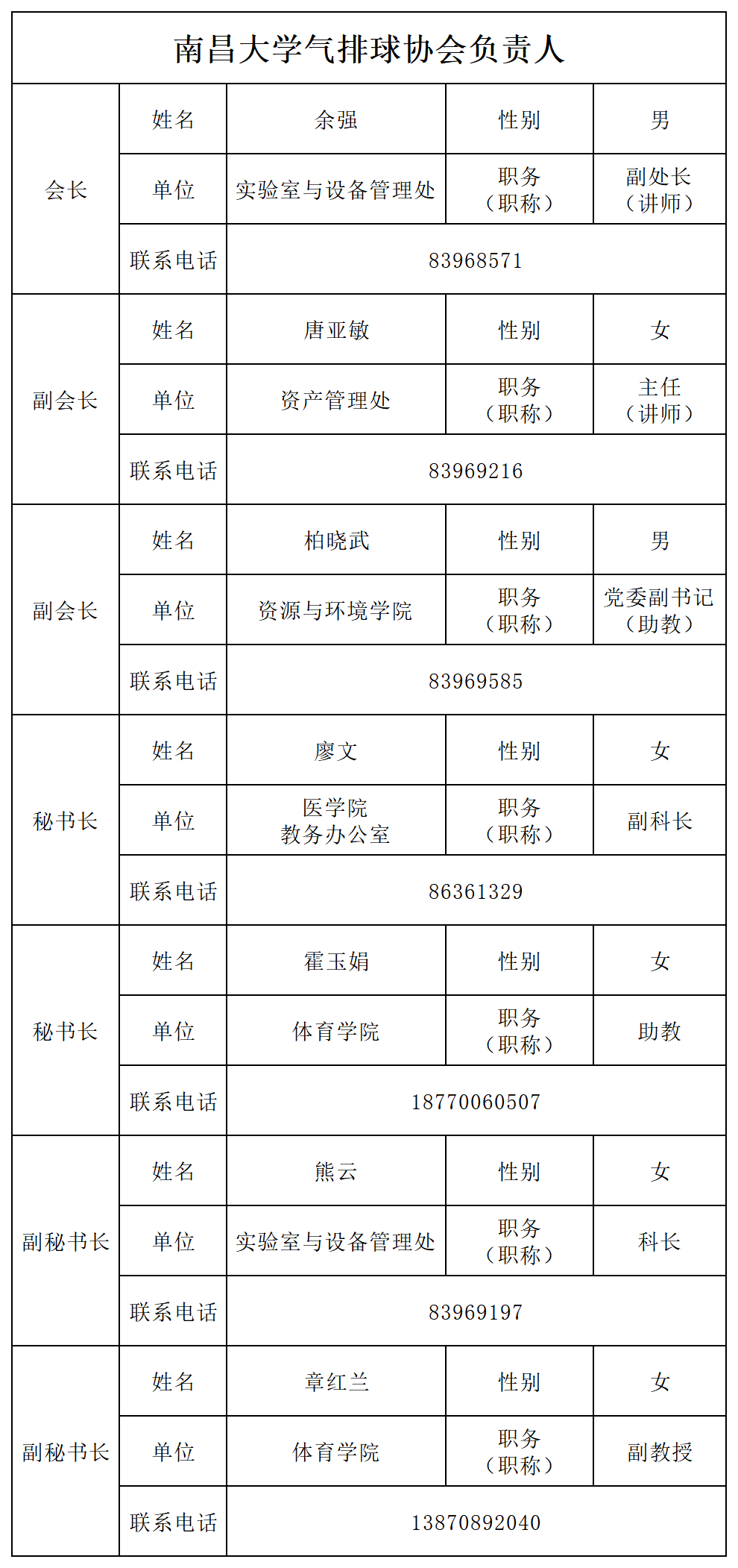 南昌大学教职工气排球协会负责人