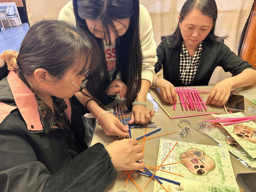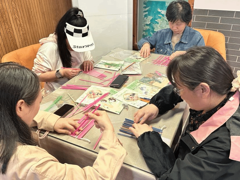 在非遗竹编杯垫制作环节,工作人员首先讲解竹编工艺的历史渊源与传承价值,从基础编织手法示范到创意设计建议,手把手带领大家体验传统技艺。大家充分发挥想象力,原本普通的竹条在指尖穿梭,变成一个个兼具实用性与纪念意义的杯垫。