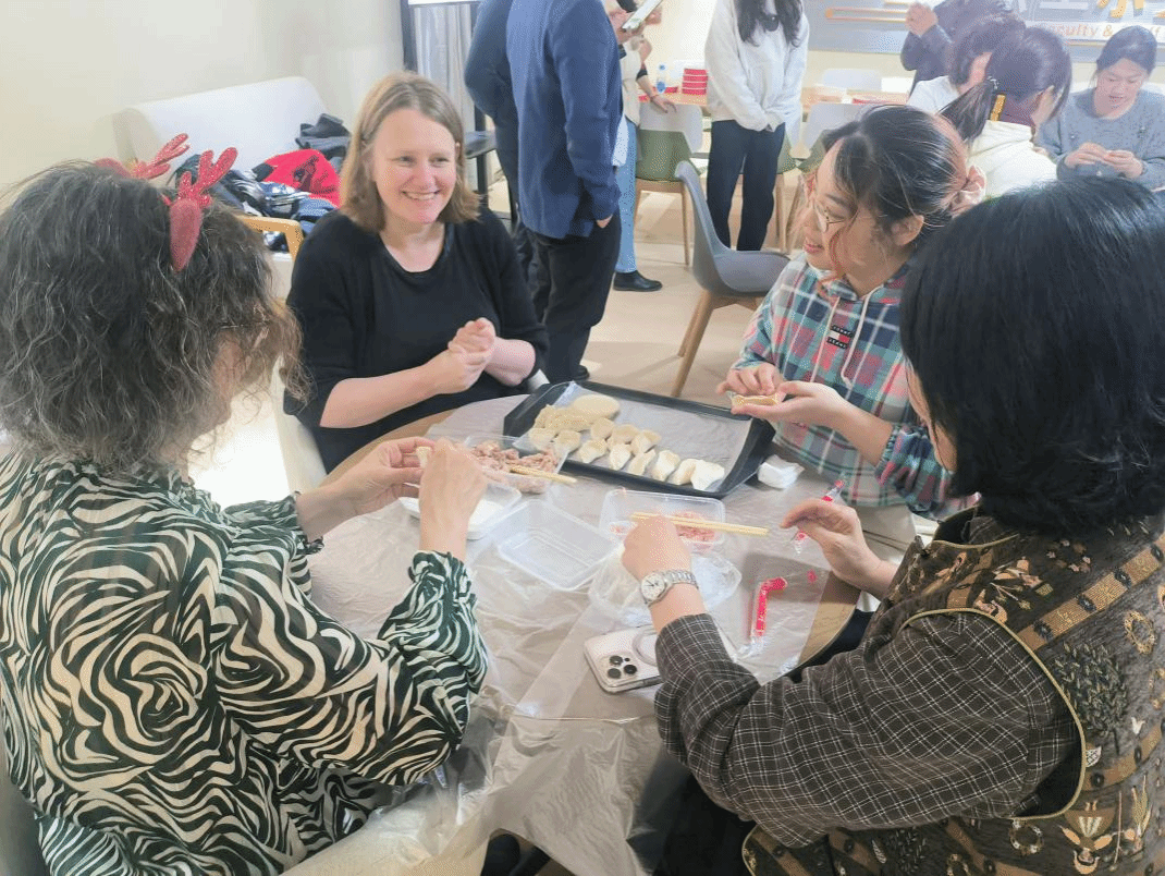 “冬至阳生春又来,人间至味是团圆。”2025年12月12日中午,玛丽女王学院工会“以‘文’会友,文心交融——中华传统文化体验日”第二期在职工小家温馨启幕。本期活动的主题为“共祝冬至安康”,由学院工会主席张春平主持,特别邀请英方外教老师与学生代表齐聚一堂,在包饺、煮饺、品饺的互动中,共赴冬至之约,共感文化魅力。
